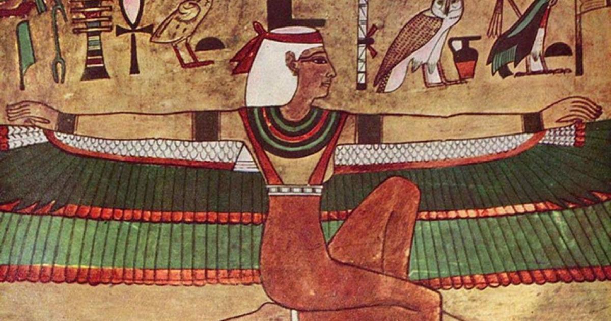 In temple reliefs she appears with outstretched wings stretching across the pictorial field, visually enclosing and safeguarding the dead or the king. The gesture is one of protection, but it is also geometry. The body becomes architecture. Again.