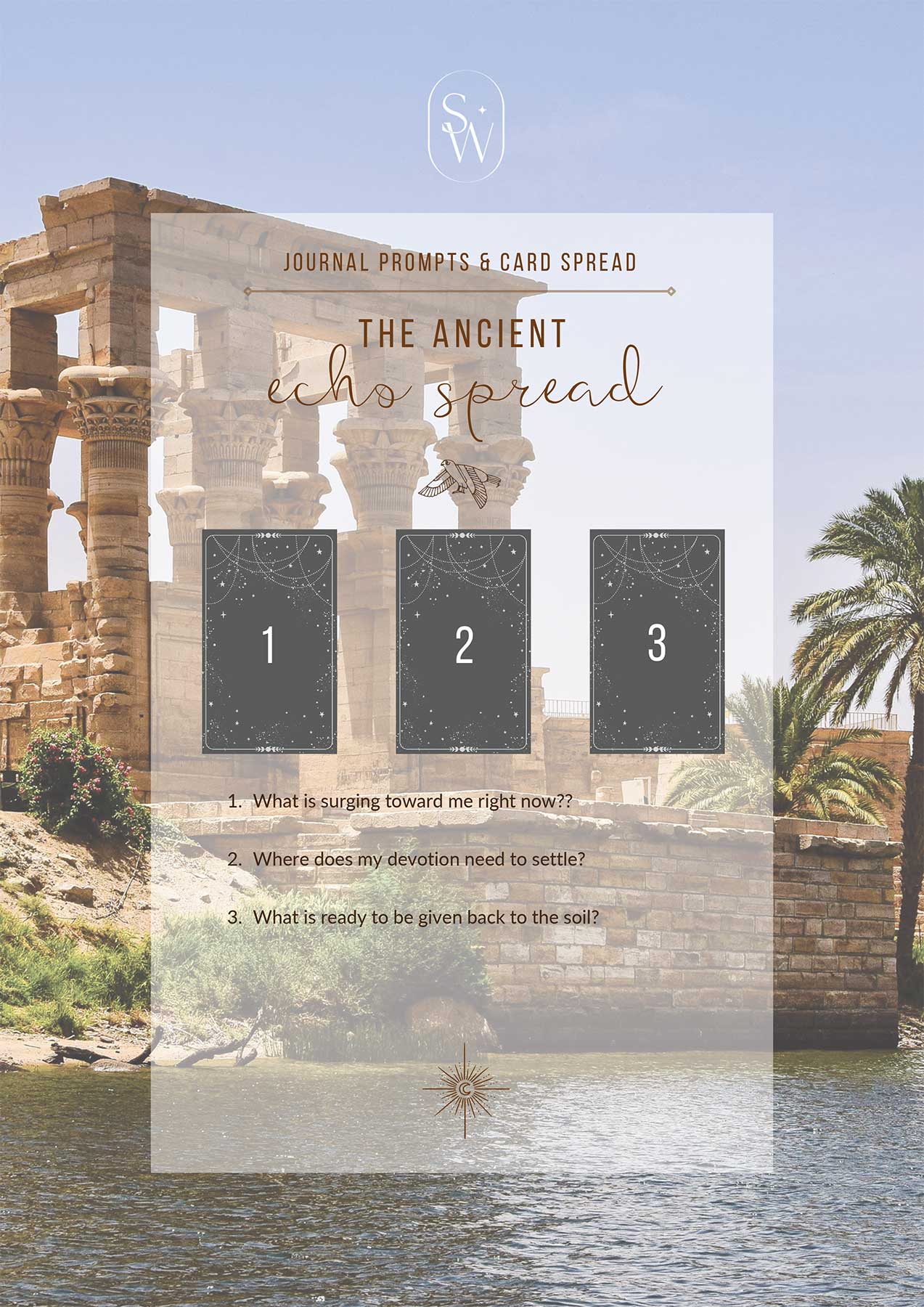 Let’s tap into our creative intuition and do some self-reflective work inspired by our theme. Below you will see our month’s Oracle/Tarot card spread. But fear not, if you are not one drawn to using oracle or tarot cards, no worries, just use the accompanying reflective questions as writing prompts for your journals!