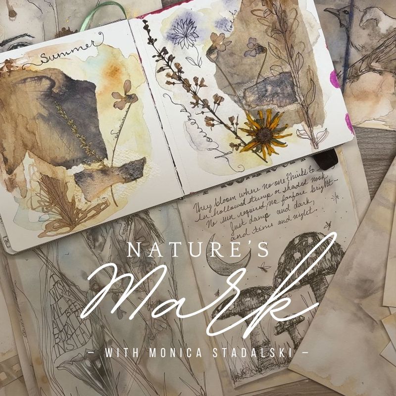 Mix in from your own collage collection - torn paper, fabric scraps, gold leaf, handwritten words, painted swatches from this month’s palette.