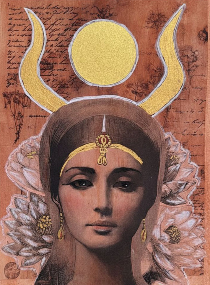 As artists, we have a particular gift waiting for us in the iconography of two of Egypt's most enduring goddesses. Isis and Hathor. Their imagery reveals how femininity functioned not as ornament but as architecture, a bridge between cosmic order and earthly survival, between political power and maternal care. Spanning thousands of years and influencing countless cultures, these two figures offer a depth of inspiration that feels, somehow, entirely contemporary.
