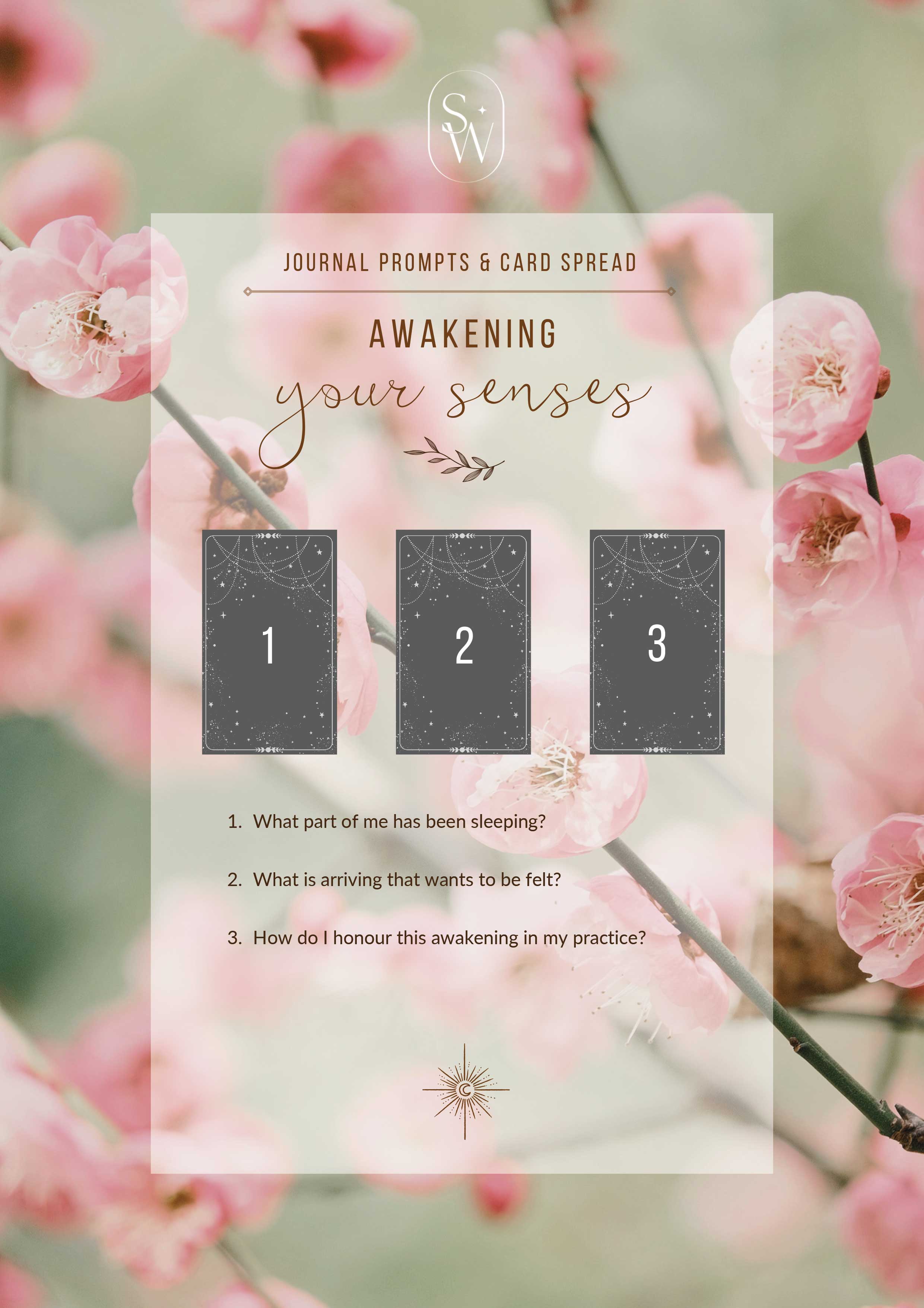Let's tap into our creative intuition and do some self-reflective work inspired by our theme. Below you will see our month's Oracle/Tarot card spread. But fear not, if you are not one drawn to using oracle or tarot cards, no worries, just use the accompanying reflective questions as writing prompts for your journals!