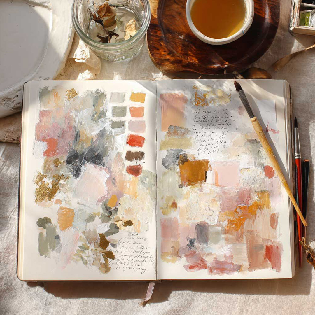 Now choose one thing from your inventory, one sensory impression that felt most alive to you, and let that become the starting point for a drawing or painted study. It might be the quality of light. A colour you noticed. A texture.