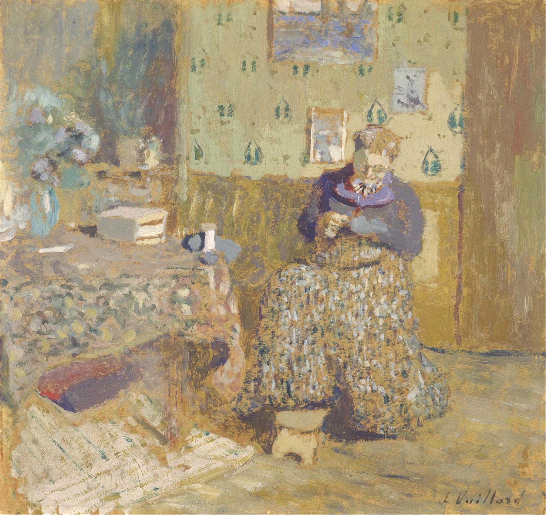 Vuillard's mother was central to his art and to his life. She was a dressmaker, and his childhood home was always full of fabric, bolts of pattern, the texture of different weaves, the visual complexity of materials stacked and folded and worn. His eye was trained in pattern before it was trained in anything else.