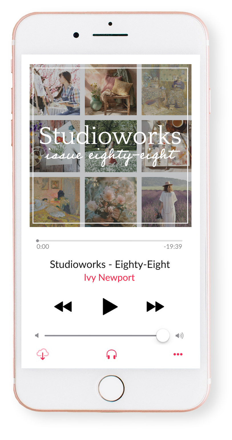 You can also listen to this month’s issue of the Studioworks journal. I find I love listening to books, podcasts and music while I draw, paint or go on a long walk. Enjoy.